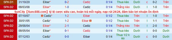 + Lịch sử đối đầu Cadiz vs Eibar