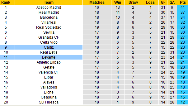 Ở thời điểm hiện tại, Cadiz và Levante đều ở khu vực giữa bảng điểm với thành tích không thực sự ấn tượng nhưng tạm yên tâm về vị trí tại La Liga. Tuy nhiên, những gì mà đội chủ nhà thể hiện từ đầu mùa thực sự ấn tượng hơn khi vốn dĩ họ chỉ là tân binh.