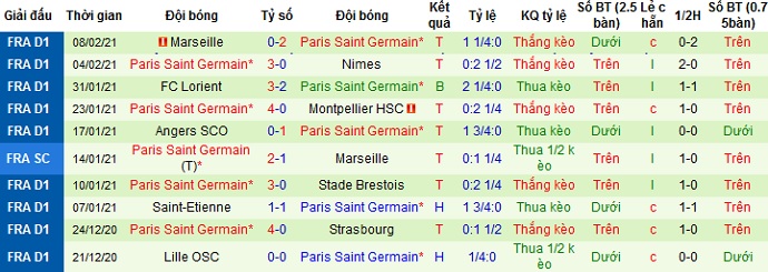 Tuy nhiên ở 5 trận đấu gần đây PSG vẫn có được tới 4 trận thắng và để thua 1 trận. Thành tích sân khách của PSG có phần tệ hơn khi chỉ thắng 2, hòa 2 và để thua 1 ở 5 lần du đấu gần nhất.