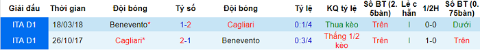 Phong độ và thống kê đối đầu Cagliari - Benevento gần đây