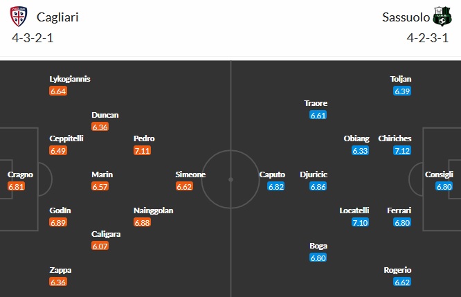 Đội hình dự kiến Cagliari vs Sassuolo