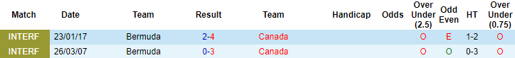 Phong độ và thống kê đối đầu Canada vs Bermuda