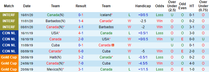 + Thống kê 10 trận gần nhất của Canada