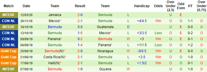 + Thống kê 10 trận gần nhất của Bermuda