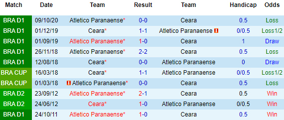 + Lịch sử đối đầu Ceara vs Atletico Paranaense