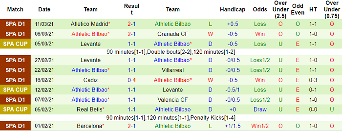 - Thống kê 10 trận gần nhất của Bilbao