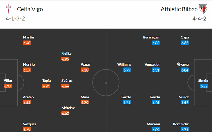 Đội hình dự kiến Celta Vigo vs Bilbao