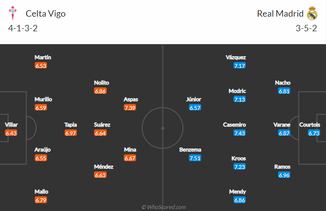 Đội hình dự kiến Celta Vigo vs Real Madrid