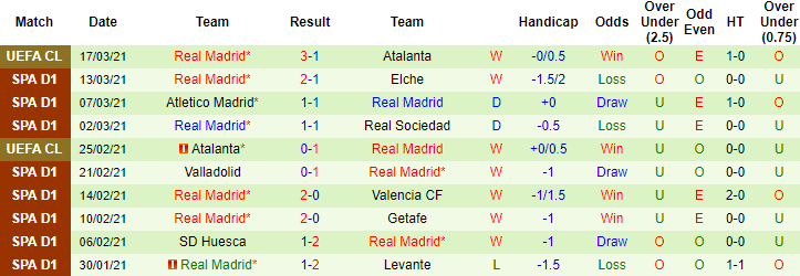 + Thống kê 10 trận gần nhất của Real Madrid