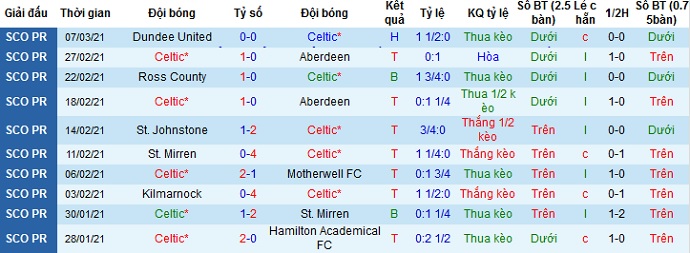 + Thống kê 10 trận gần nhất của Celtic