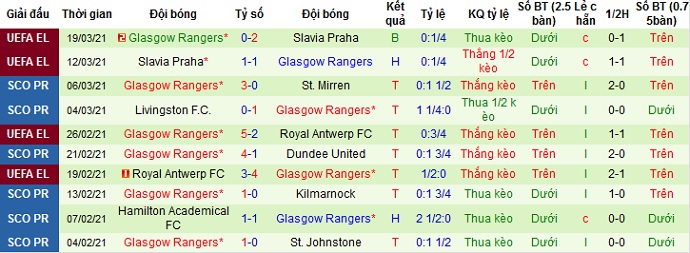 Trong khi đó Rangers mới đây đã bị loại khỏi Europa League bởi Slavia Praha sau khi hòa trên sân đối phương nhưng lại để thua ngay trên sân nhà. Thế nên giờ đây Rangers sẽ chỉ còn lo tập trung vào giải quốc nội, nơi đội bóng đang bất bại tới 33 trận liên tiếp. Tuy nhiên trên sân khách Rangers chỉ đang thắng 3 và hòa 2 ở 5 lần du đấu gần đây.