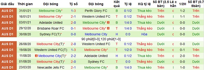 + Thống kê 10 trận gần nhất của Melbourne City