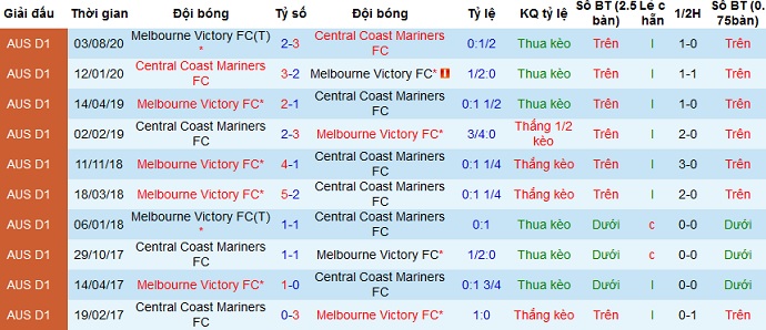 Thế nhưng ngay ở mùa giải trước Central Coast Mariners cũng là đội giành chiến thắng trong cả 2 lần đối đầu. Bởi vậy với phong độ vẫn đang rất tệ của Melbourne Victory thì chọn cửa trên là sự lựa chọn hoàn toàn hợp lý.