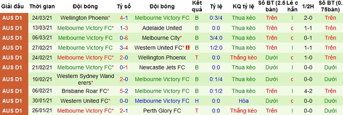+ Thống kê 10 trận gần nhất của Melbourne Victory