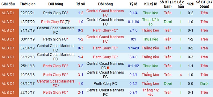 Lý do là vì ở 3 lần đối đầu gần nhất khi Central Coast Mariners được thi đấu trên sân nhà họ đều để thua trước Perth Glory với cách biệt đều là 3 bàn. Tuy nhiên ở mùa giải này Central Coast Mariners đã trình diễn một gương mặt khác hẳn và 3 trận thắng gần nhất trên sân nhà của họ trước các đội mạnh không phải ngẫu nhiên hay may mắn.