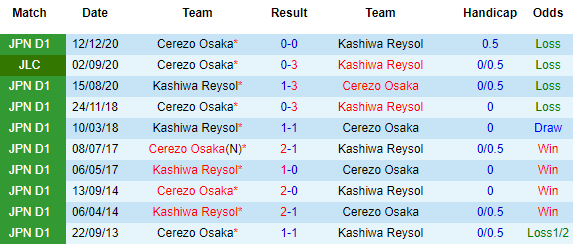 + Lịch sử đối đầu Cerezo Osaka vs Kashiwa Reysol