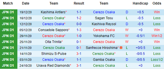 + Thống kê 10 trận gần nhất của Cerezo Osaka