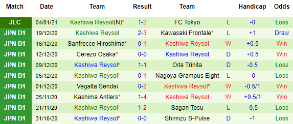 + Thống kê 10 trận gần nhất của Kashiwa Reysol