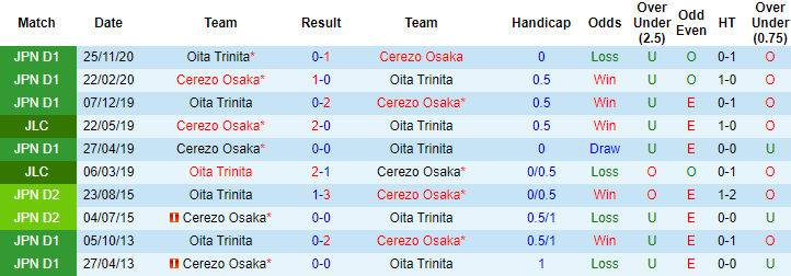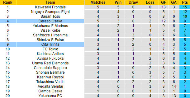 Phong độ và thống kê đối đầu Cerezo Osaka vs Oita Trinita