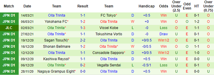 + Thống kê 10 trận gần nhất của Oita Trinita