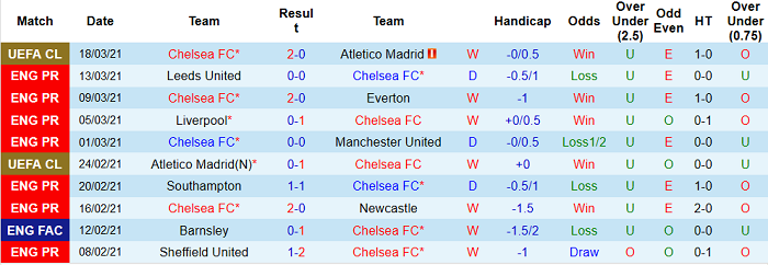 - Thống kê 10 trận gần nhất của Chelsea