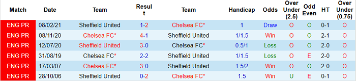 Tỷ lệ kèo Chelsea vs Sheffield Untied