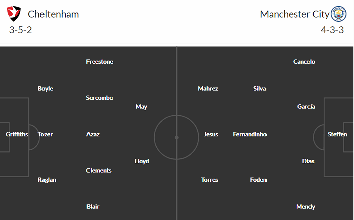 Không may cho Cheltenham khi phải chạm trán Man City ở thời điểm hiện tại. The Citizens toàn thắng 9 trận gần nhất trên mọi đấu trường. Danh sách ‘nạn nhân’ của nửa Xanh thành Manchester trong thời gian qua có cả MU, Arsenal, Newcastle và mới nhất là Aston Villa.