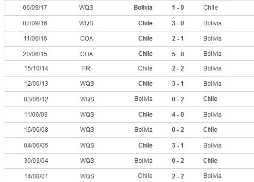 Dự đoán tỷ số Chile 2-0 Bolivia