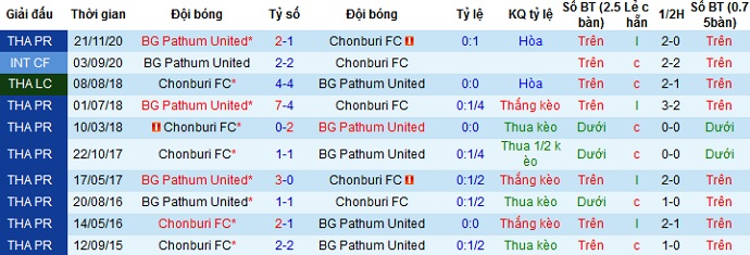 + Lịch sử đối đầu Chonburi vs BG Pathum