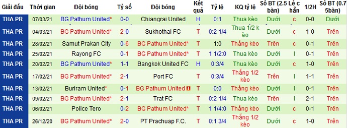 + Thống kê 10 trận gần nhất của BG Pathum