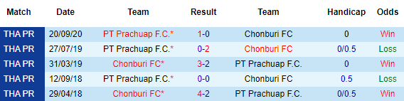+ Lịch sử đối đầu Chonburi vs Prachuap