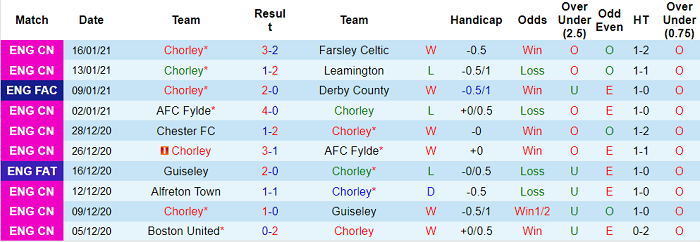 - Thống kê 10 trận gần nhất của Chorley