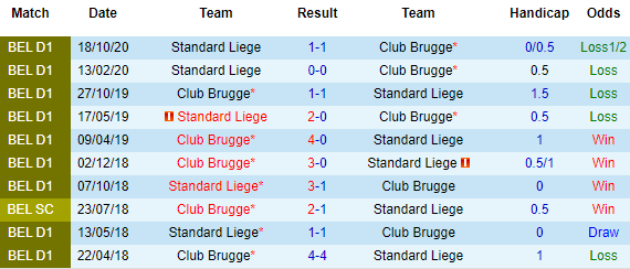 Cả Club Brugge và Standard Liege đều là những cái tên danh tiếng ở Bỉ. Vào thời điểm hiện tại, đôi bên cũng nằm trong nhóm những CLB dẫn đầu ở giải VĐQG. Nếu như Club Brugge xếp ở vị trí số 1 và gần như chắc chắn sẽ kết thúc giai đoạn vòng tròn ở thứ hạng này thì Standard Liege cũng đang đứng thứ 4.