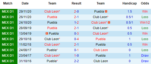 + Lịch sử đối đầu Club Leon vs Puebla