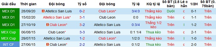 + Lịch sử đối đầu Club León vs San Luis