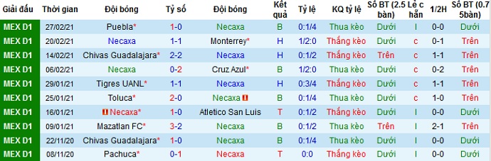 + Soi tỷ lệ kèo châu Á: Xếp trên đối thủ ở bảng xếp hạng và còn được chơi trên sân nhà nhưng khá bất ngờ khi Necaxa bị đánh giá là đội cửa dưới với kèo chấp là +0,25. Lý do là vì ở giai đoạn lượt đi trong cả 2 lần đối đầu phần thắng lại đều thuộc về đội khách.