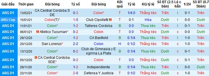 + Thống kê 10 trận gần nhất của Colon Santa Fe