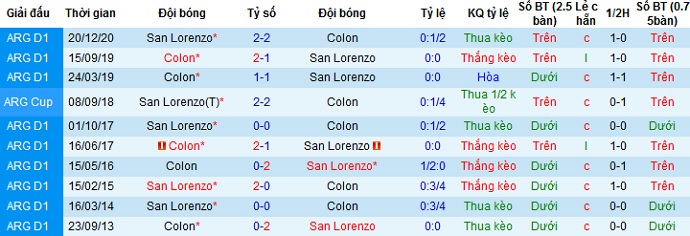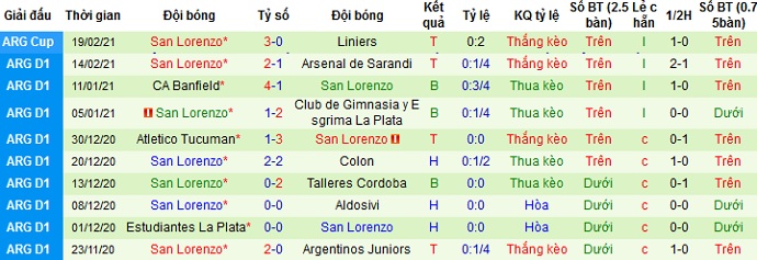 Ở 5 trận gần nhất San Lorenzo cũng có được 3 trận thắng, để thua 2 trận. Thành tích sân khách của đội bóng cũng không quá tệ khi thắng 2, hòa 2 và để thua 1 trong 5 lần du đấu gần nhất.
