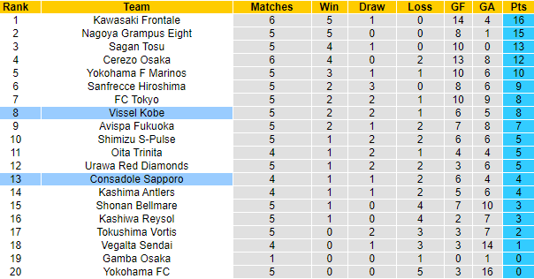 Đội bóng của Chanathip Songkrasin đã sa sút nhiều so với 2, 3 mùa trước đây. Consadole Sapporo lúc này chỉ còn là cái tên thuộc diện trung bình của J-League. Vị trí thứ 13 hiện tại cùng 4 điểm/4 trận đã phản ánh đúng thực lực của Consadole Sapporo vào lúc này.