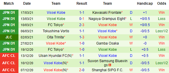 + Thống kê 10 trận gần nhất của Vissel Kobe