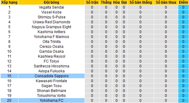 + Lịch sử đối đầu Consadole Sapporo vs Yokohama FC