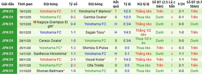 + Thống kê 10 trận gần nhất của Yokohama FC