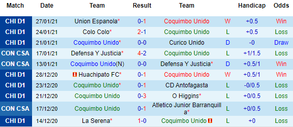+ Thống kê 10 trận gần nhất của Coquimbo Unido