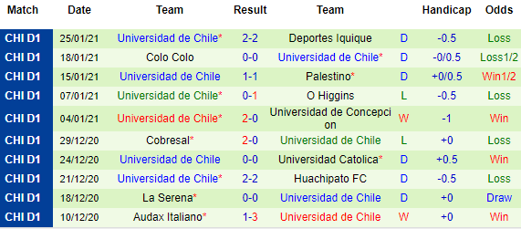 + Thống kê 10 trận gần nhất của Univ de Chile