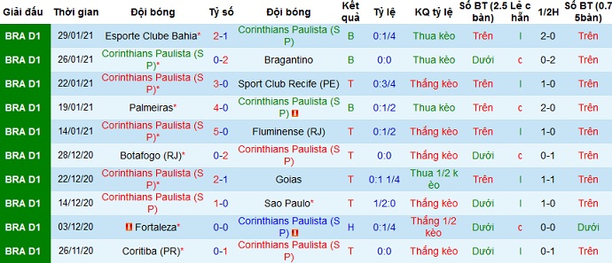 + Thống kê 10 trận gần nhất của Corinthians