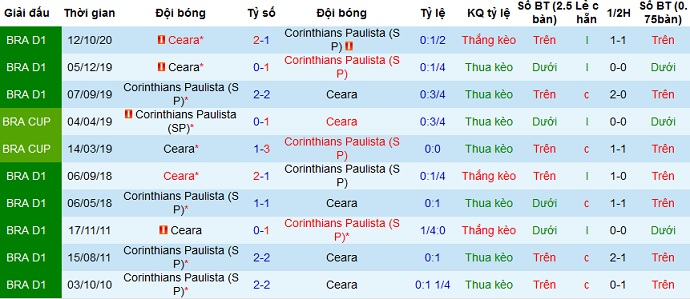 Tỷ lệ kèo Corinthians vs Ceará