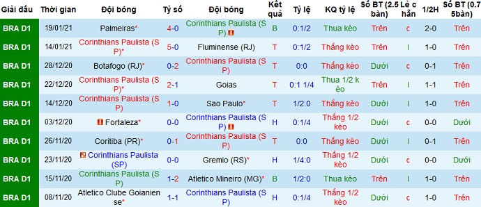 + Thống kê 10 trận gần nhất của Corinthians