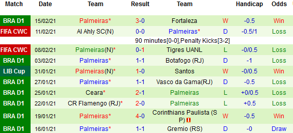 + Soi tỷ lệ kèo châu Á: Trở về từ FIFA Club World Cup, Palmeiras phải đối mặt với lịch thi đấu dày đặc tại sân chơi trong nước với tần suất 3 ngày một trận nên vấn đề thể lực khó đảm bảo.