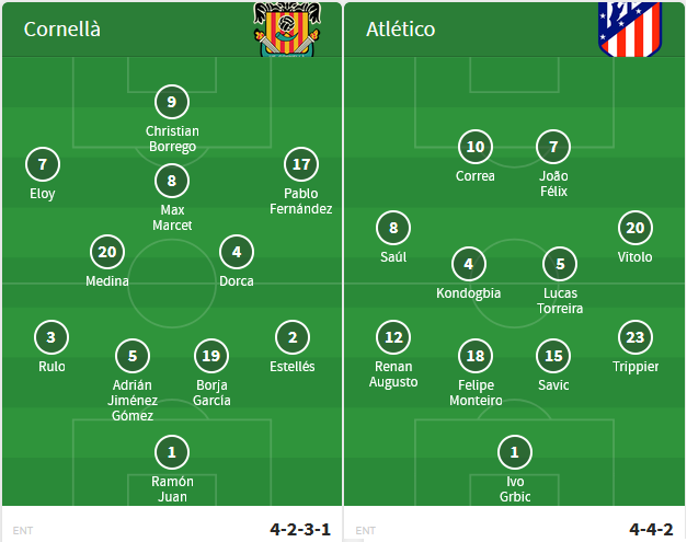 Đội hình dự kiến Cornella vs Atletico Madrid: