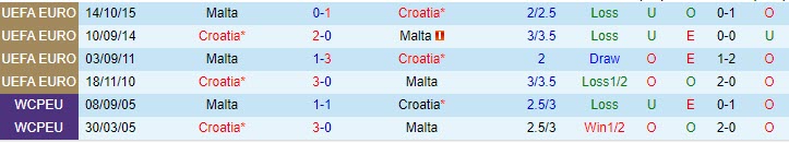 Phong độ và thống kê đối đầu Croatia - Malta gần đây: